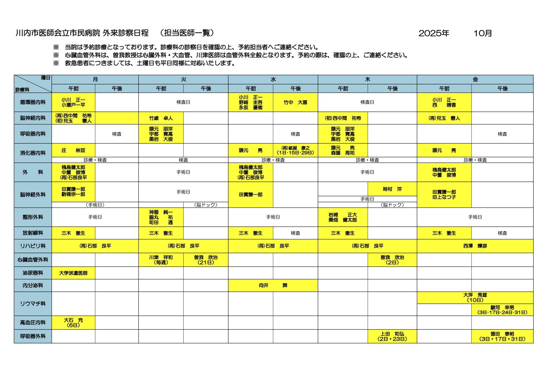 - 2025年6月外来担当医師一覧