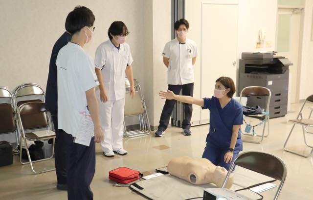 普通救命講習 Posted on 2025年6月23日2025年10月22日 by 川内市医師会立市民病院 0 6月20日(金)、職員向けに普通救命講習を実施し、各部署から8名が参加いたしました。 講習では、まずDVDを用いて心肺蘇生法やAEDの使用方法、異物除去などの基本的な知識を学習した後、実技を交えた約3時間の研修を行いました。 今回の講習を通じて、職員一人ひとりの救命対応能力の向上を図るとともに、院内外での緊急時対応力の強化に努めてまいります。